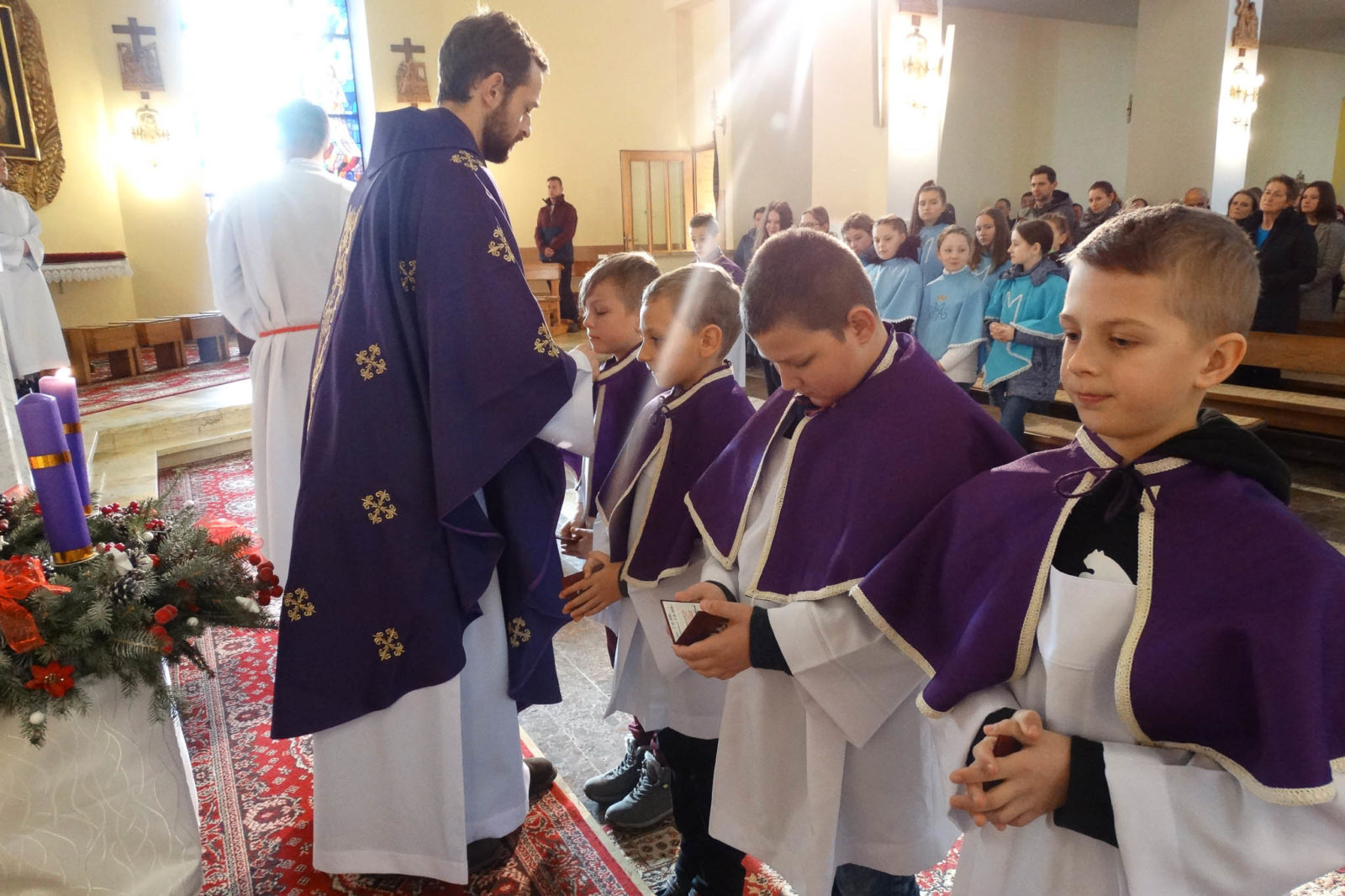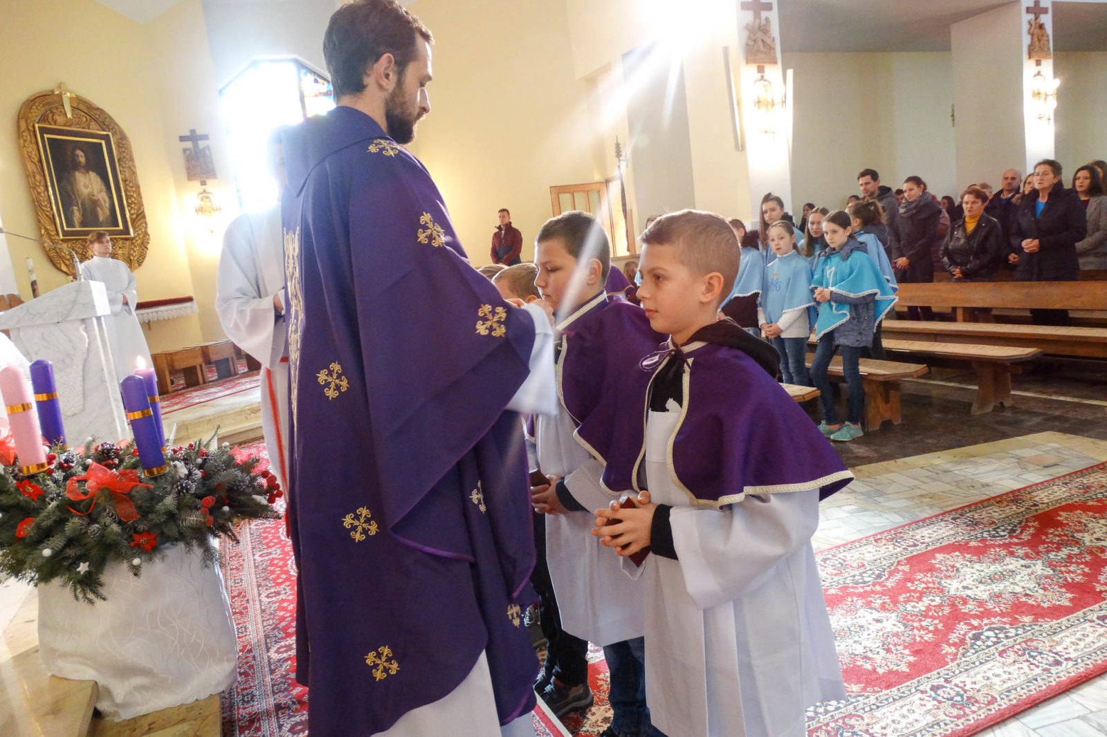 Nowi ministranci Posted on 1 grudnia 20191 grudnia 2019 by Administrator W dzisiejszą niedzielę do grona ministrantów zostało włączonych czworo chłopców. Gratulujemy rodzicom i życzymy wszelkich łask Bożych związanych z posługą przy ołtarzu.
