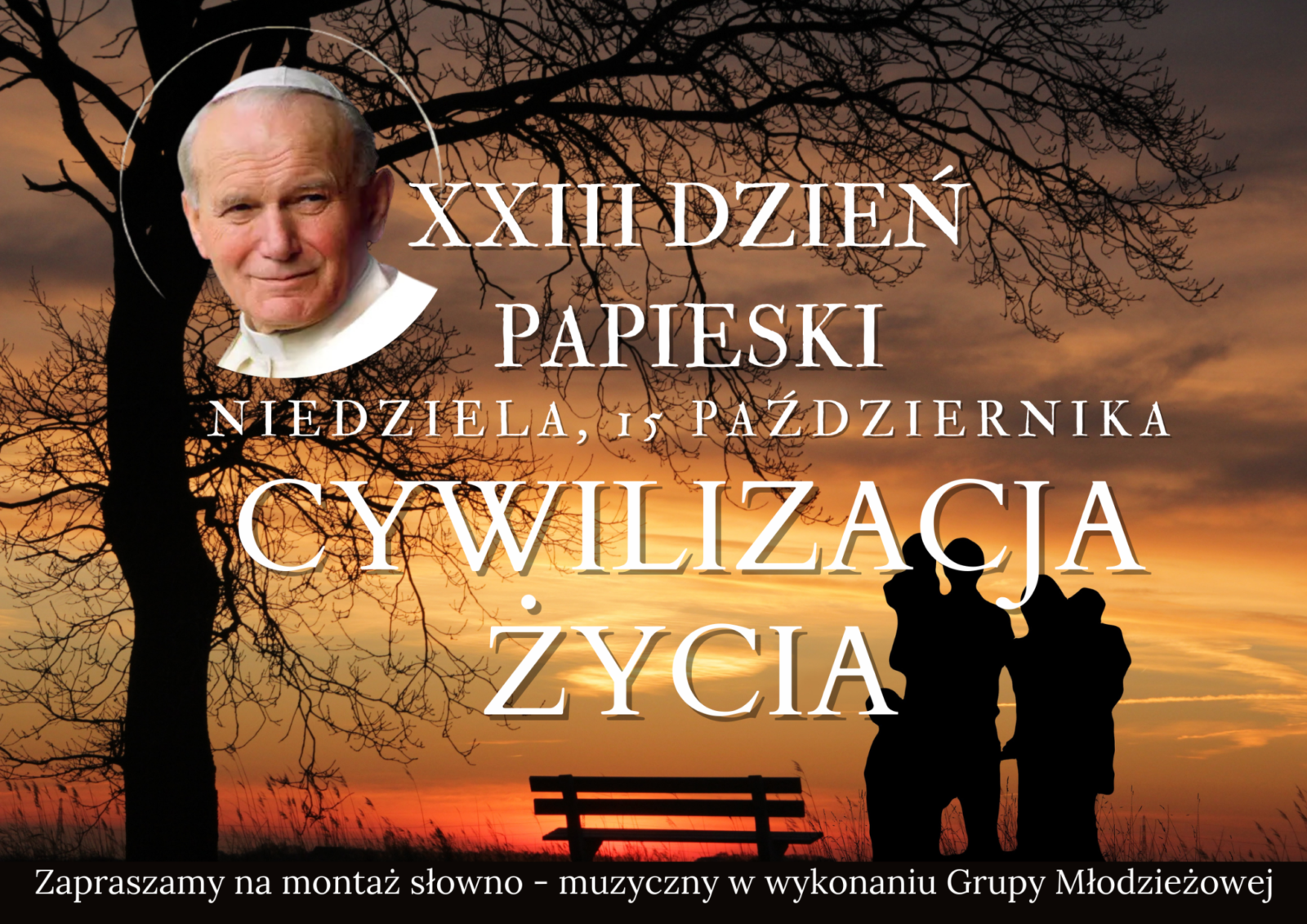 XXIII Dzień Papieski Posted on 7 października 202314 października 2023 by Administrator2 Apostolska Grupa Młodzieżowa zaprasza w niedzielę 15 października po Mszach św. o godz. 8:30 oraz o godz. 10:30